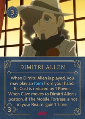 Dimitri Allen is the main antagonist of Professor Layton and the Unwound Future. He is a scientist who studies time travel. Masquerading as Layton's future self, he rules over Future London and leads the Family.