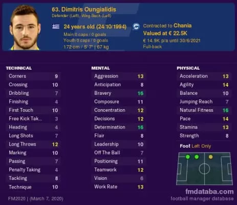 Dimitrios Oungialidis is a Greek professional footballer who plays as a left-back for Super League 2 club Xanthi.