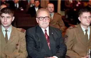 Dinko Šakić was a Croatian Ustaše official who commanded the Jasenovac concentration camp in the Independent State of Croatia from April to November 1944, during World War II.