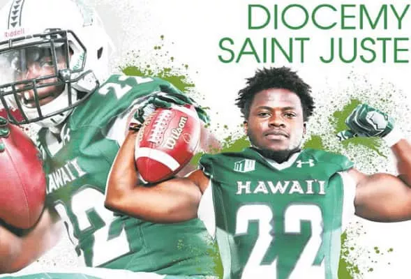 Diocemy "Dee" Saint Juste is an American football running back who plays for the Hawaii Rainbow Warriors football team. As a senior, he ranked sixth among all Division I FBS players with 1,510 rushing yards during the regular season.