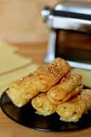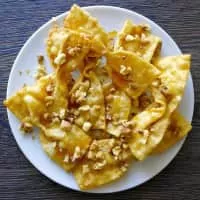 Diples or Thiples is a Greek dessert from the Peloponnese, made of thin sheet-like dough. They are essentially the same as angel wings, except that they are dipped in syrup rather than served dry. The dough is rolled into long, thin strips, fried and folded in hot oil and then dipped in a sugar or honey syrup.