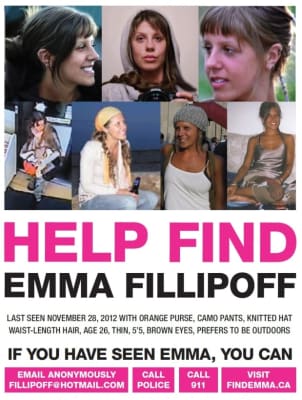 Emma Fillipoff is a Canadian woman who has been missing since November 28, 2012, last seen in front of the Empress Hotel in Victoria, British Columbia, at the age of 26.