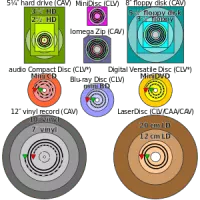Disk storage is a general category of storage mechanisms where data is recorded by various electronic, magnetic, optical, or mechanical changes to a surface layer of one or more rotating disks. A disk drive is a device implementing such a storage mechanism.