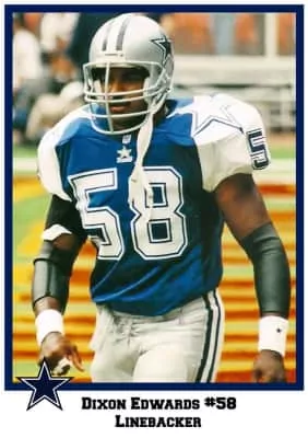 Dixon Voldean Edwards, III is a former American football linebacker in the National Football League for the Dallas Cowboys and Minnesota Vikings. He played college football at Michigan State University were he studied Construction Management.