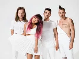 DNCE is an American pop band. The group consists of vocalist Joe Jonas, drummer Jack Lawless, bassist and keyboardist Cole Whittle, and guitarist JinJoo Lee. The group signed with Republic Records, who released their debut single, "Cake by the Ocean", in September 2015.