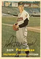 Donald Hugh Ferrarese, is an American former professional baseball pitcher, who played in Major League Baseball for the Baltimore Orioles, Cleveland Indians, Chicago White Sox, Philadelphia Phillies and St. Louis Cardinals from 1955 to 1962. A left-handed thrower, he batted right-handed.