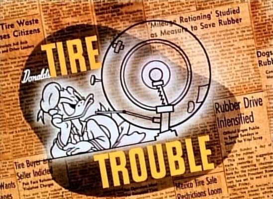 Donald's Tire Trouble is a cartoon by Walt Disney Productions, featuring their character Donald Duck. It was directed by Dick Lundy and released in 1943. The cartoon pokes fun at the difficulties involved in America's rubber rationing, a consequence of World War II.
