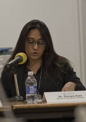 Donya Aziz is a Pakistani politician who has been a member of the National Assembly of Pakistan from 2002 to 2013.