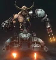 The Doom Hunter is a new type of enemy introduced in Doom Eternal. It is a cybernetic demon from an ancient line known as the "Agaddon Hunters," creatures that were native to Earth in prehistoric times. During the Hellish invasion of Earth, UAC cultists discovered the Agaddon Hunter remains and excavated them.