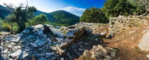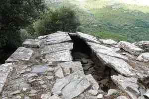 The dragon houses or Draga are some 20 large, ruined buildings found in the south of the island of Euboea, Greece. They were built with massive stone blocks without mortar and large stone slabs for the roofs. The Dragon House on Mount Ochi, north of Karystos is the most famous and well preserved.