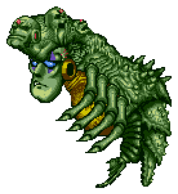 The Draygon (ドレイゴン, Doreigon?) is a major boss from Super Metroid. It is a sort of waterborn crustacean, with a hard outer shell and soft underbelly. It seems to be a fully developed Evir and even has a few hatchlings, which are present in the chamber that it dwells in.