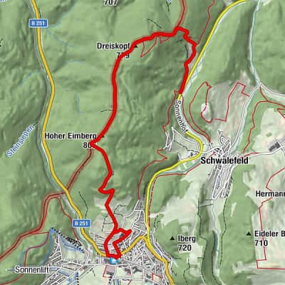 Dreiskopf is a mountain near Schwalefeld, in the Waldeck-Frankenberg district, in Hesse, Germany. It has an elevation of 779.8 m above sea level, and it's a part of the Rothaar Mountains.