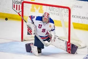Drew Commesso is an American professional ice hockey goaltender who is currently playing for the Rockford IceHogs in the American Hockey League as a prospect to the Chicago Blackhawks of the National Hockey League. He was selected by the Blackhawks in the second round, 46th overall, of the 2020 NHL Entry Draft.