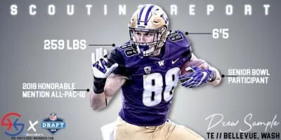 Drew Sample is an American football tight end for the Cincinnati Bengals of the National Football League. He played college football at Washington and was drafted by the Bengals in the second round of the 2019 NFL Draft.
