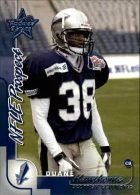 Duane Hawthorne is a former American football cornerback in the National Football League for the Dallas Cowboys and San Francisco 49ers. He also was a member of the Scottish Claymores in NFL Europe. He played college football at Northern Illinois University.