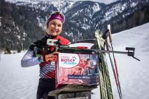 Dunja Zdouc is an Austrian biathlete. She competed in the 2014/15 World Cup season, and represented Austria at the Biathlon World Championships 2015 in Kontiolahti.