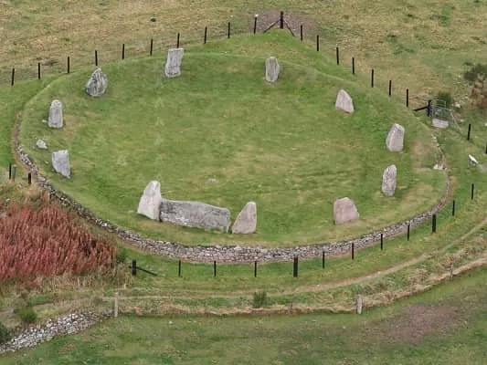 Easter Aquhorthies stone circle, located near Inverurie in north-east Scotland, is one of the best-preserved examples of a recumbent stone circle, and one of the few that still have their full complement of stones and the only one that has all its stones still standing without having been re-erected.