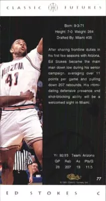 Edward Kobie Stokes is an American former professional basketball player, who played at the center position. Stokes attended the University of Arizona. During his collegiate career, he scored 984 points, grabbed 644 rebounds and blocked 167 shots. He was selected by the Miami Heat in the 1993 NBA draft.