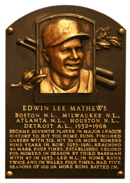 Edwin Lee Mathews was an American Major League Baseball third baseman. He played 17 seasons for Boston / Milwaukee / Atlanta Braves; Houston Astros and Detroit Tigers.