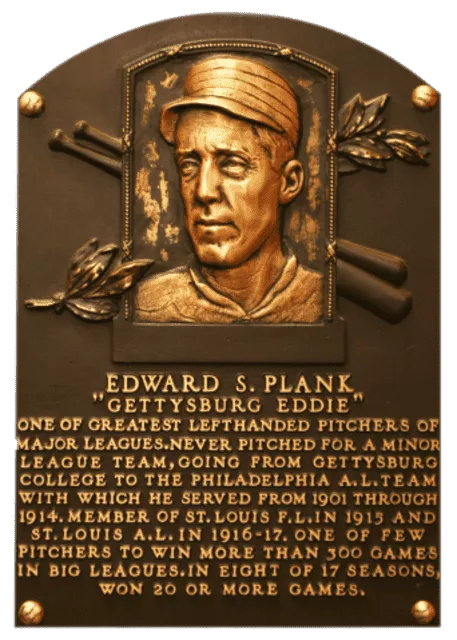 Edward Stewart Plank, nicknamed "Gettysburg Eddie", was an American professional baseball player. A pitcher, Plank played in Major League Baseball for the Philadelphia Athletics from 1901 through 1914, the St. Louis Terriers in 1915, and the St. Louis Browns in 1916 and 1917.