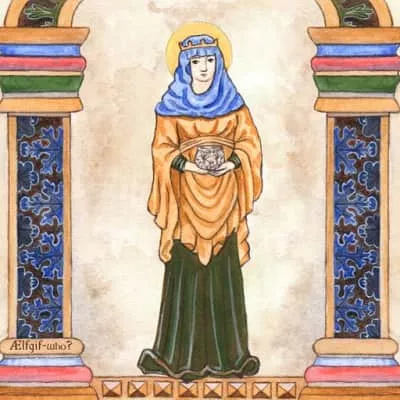 Ealdgyth, also Aldgyth or Edith in modern English, was a daughter of Ælfgar, Earl of Mercia, the wife of Gruffudd ap Llywelyn, ruler of all Wales, and later the wife and queen consort of Harold Godwinson, king of England in 1066. She was described by William of Jumièges as a considerable beauty.