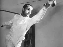 Edoardo Mangiarotti was an Italian fencer. He won a total of 39 Olympic titles and World championships, more than any other fencer in the history of the sport. His Olympic medals include one individual gold, five team golds, five silver, and two bronze medals from 1936 to 1960.