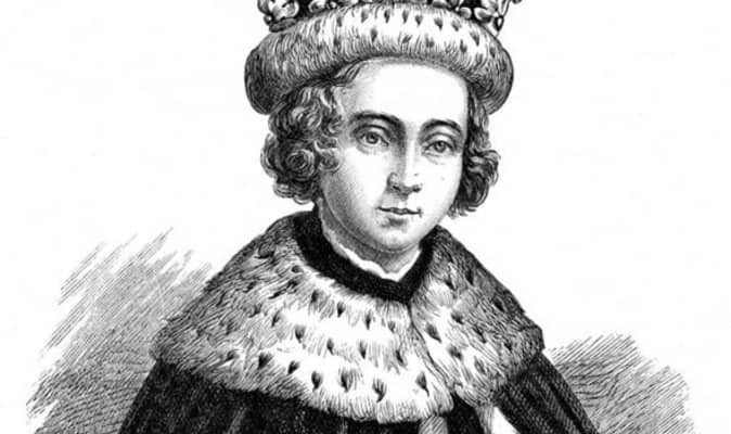 Edward V was de jure King of England from 9 April to 25 June 1483. He succeeded his father, Edward IV, upon the latter's death.