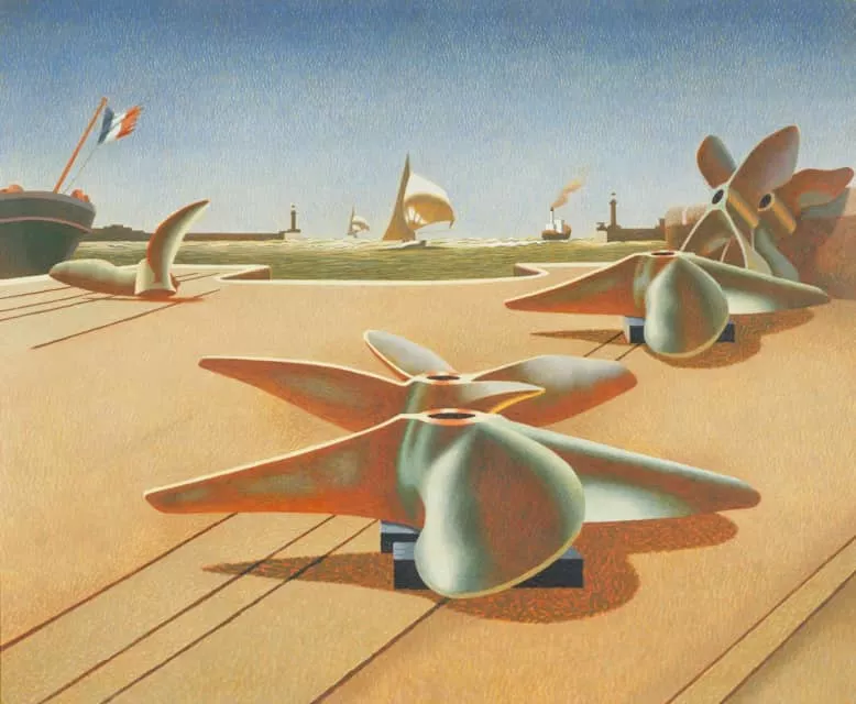 Edward Alexander Wadsworth ARA was an English artist, closely associated with modernist Vorticism movement. He painted coastal views, abstracts, portraits and still-life in tempera medium and works printed using wood engraving and copper.