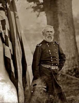 Edwin Vose Sumner was a career United States Army officer who became a Union Army general and the oldest field commander of any Army Corps on either side during the American Civil War. His nicknames "Bull" or "Bull Head" came both from his great booming voice and a legend that a musket ball once bounced off his head.