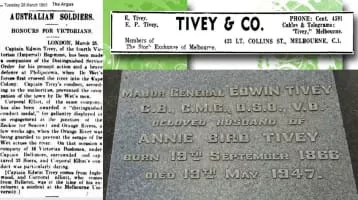 Major General Edwin Tivey, CB, CMG, DSO, VD was an Australian stockbroker and a senior officer in the Australian Army during the First World War.
