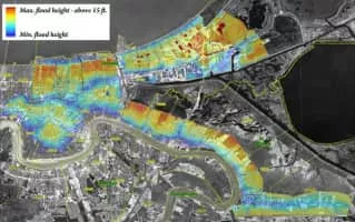 As the center of Hurricane Katrina passed southeast of New Orleans on August 29, 2005, winds downtown were in the Category 1 range with frequent intense gusts and tidal surge.