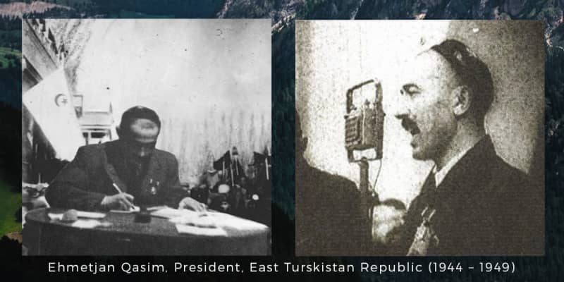 Ehmetjan Qasim was the president of the Second East Turkestan Republic. He was a Uyghur political leader in East Turkistan, and also the vice chairman of the Xinjiang Provincial Coalition Government. Ehmetjan was born in Ghulja in 1914.