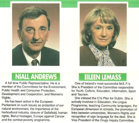 Eileen Lemass is a former Irish Fianna Fáil politician, who served as a Teachta Dála from 1977 to 1987, and also as a member of the European Parliament from 1984 to 1989.