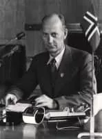 Einar Henry Gerhardsen was a Norwegian politician from the Labour Party of Norway. He was the 22nd prime minister of Norway for three periods, 1945–1951, 1955–1963 and 1963–1965. With totally 16 years in office, he is the longest serving Prime Minister in Norway since the introduction of parliamentarism.