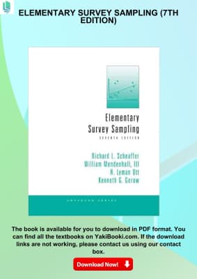 ELEMENTARY SURVEY SAMPLING introduces students to the design and analysis of sample surveys via a practical, engaging approach. First, this introductory text begins with brief chapters focused on the important role that sample surveys play in the modern world. Then, each successive chapter builds on this foundation. ...