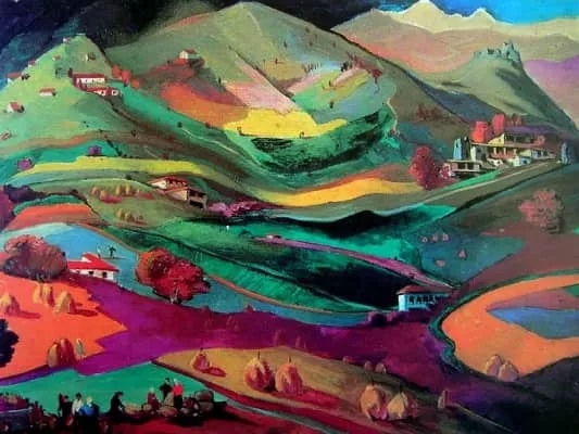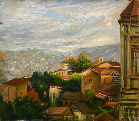Elene Akhvlediani was a 20th-century Georgian painter, graphic artist, and theater decorator. Akhvlediani is famous for her depictions of Georgian towns, for her illustrations for the works of Ilia Chavchavadze and Vazha-Pshavela, and for designing plays in the Marjanishvili Theater in Tbilisi, Georgia.