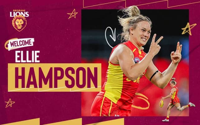 Ellie Hampson is an Australian rules footballer playing for Brisbane in the AFL Women's competition. From 2020 to season seven, she played for Gold Coast.