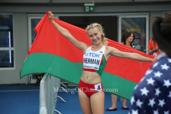 Elvira Uladzimirauna Herman is a Belarusian athlete specialising in the sprint hurdles. She won the gold medal at the 2018 European Championships At the 2018 European Athletics Golden Tracks awards in Lausanne Elvira received the award as Europe's female rising star in 2018.