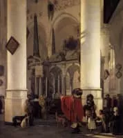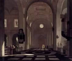 Emanuel de Witte was a Dutch perspective painter. In contrast to Pieter Jansz Saenredam, who emphasized architectural accuracy, De Witte was more concerned with the atmosphere of his interiors. Though few in number, de Witte also produced genre paintings.
