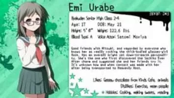 Emi Urabe (卜部 恵美, Urabe Emi?) is a student of Byakudan Senior High School's classroom 2-4, a minor character in Corpse Party (PC), and a victim of Heavenly Host.