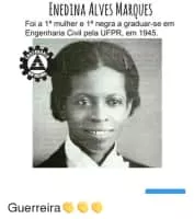 Enedina Alves Marques was a Brazilian engineer and teacher. She worked for the Paraná State department of water and energy. Marques graduated in civil engineering in 1945 at the Federal University of Paraná, becoming the first black woman engineer in Brazil.