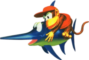 Enguarde the Swordfish is an Animal Buddy owned by the Kongs who first appeared in Donkey Kong Country and later in most other Donkey Kong games. Enguarde can be found hidden in all four underwater levels somewhere in Donkey Kong Country and can attack most underwater enemies with its sharp bill to defeat them.