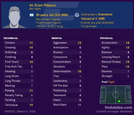 Enzo Agustín Ritacco is an Argentine professional footballer who plays as a midfielder for Acassuso.