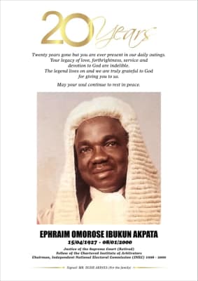Ephraim Omorose Ibukun Akpata was a Justice of the Supreme Court of Nigeria and the first chairman of the Independent National Electoral Commission of Nigeria, responsible for the 1998/1999 elections that re-introduced democracy in May 1999.