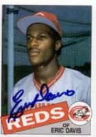 Eric Keith Davis is an American former center fielder for several Major League Baseball teams, most notably the Cincinnati Reds, to which he owes his nickname Eric the Red. Davis was 21 years old when he made his major league debut with the Reds on May 19, 1984.