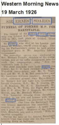 Sir Ernest Joseph Soares, of 36 Princes Gate, London, and of Upcott House in the parish of Pilton, near Barnstaple in North Devon, was a British solicitor and Liberal politician.