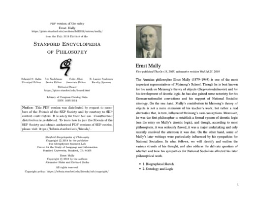 Ernst Mally was an Austrian analytic philosopher, initially affiliated with Alexius Meinong's Graz School of object theory. Mally was one of the founders of deontic logic and is mainly known for his contributions in that field of research.