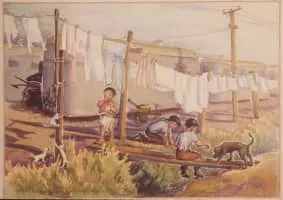 Estelle Ishigo, née Peck, was an American water color artist. During World War II she and her husband were interned at the Heart Mountain Relocation Center in Wyoming.