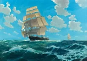Peintre des mers et des navires, Etienne Blandin fut aussi un portraitiste subtil et paysagiste talentueux. Coloriste exceptionnel, il saisit à la perfection les lumières, de l'aube au crépuscule. Ses tableaux rendent merveilleusement la force du vent, le mouvement de la mer et la variété du ciel.