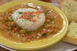 Étouffée or etouffee is a dish found in both Cajun and Creole cuisine typically served with shellfish over rice. The dish employs a technique known as smothering, a popular method of cooking in the Cajun areas of southwest Louisiana.